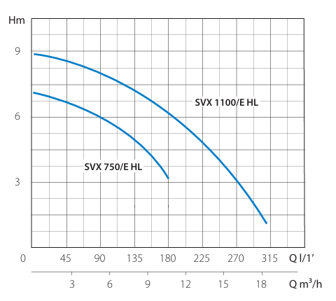 Selon les puissances de 750W et 1100W de l’électropompe submersible MARINA SVX, elle peut pomper jusqu’à 300 L/min avec une hauteur de refoulement pouvant atteindre 8,8 m.